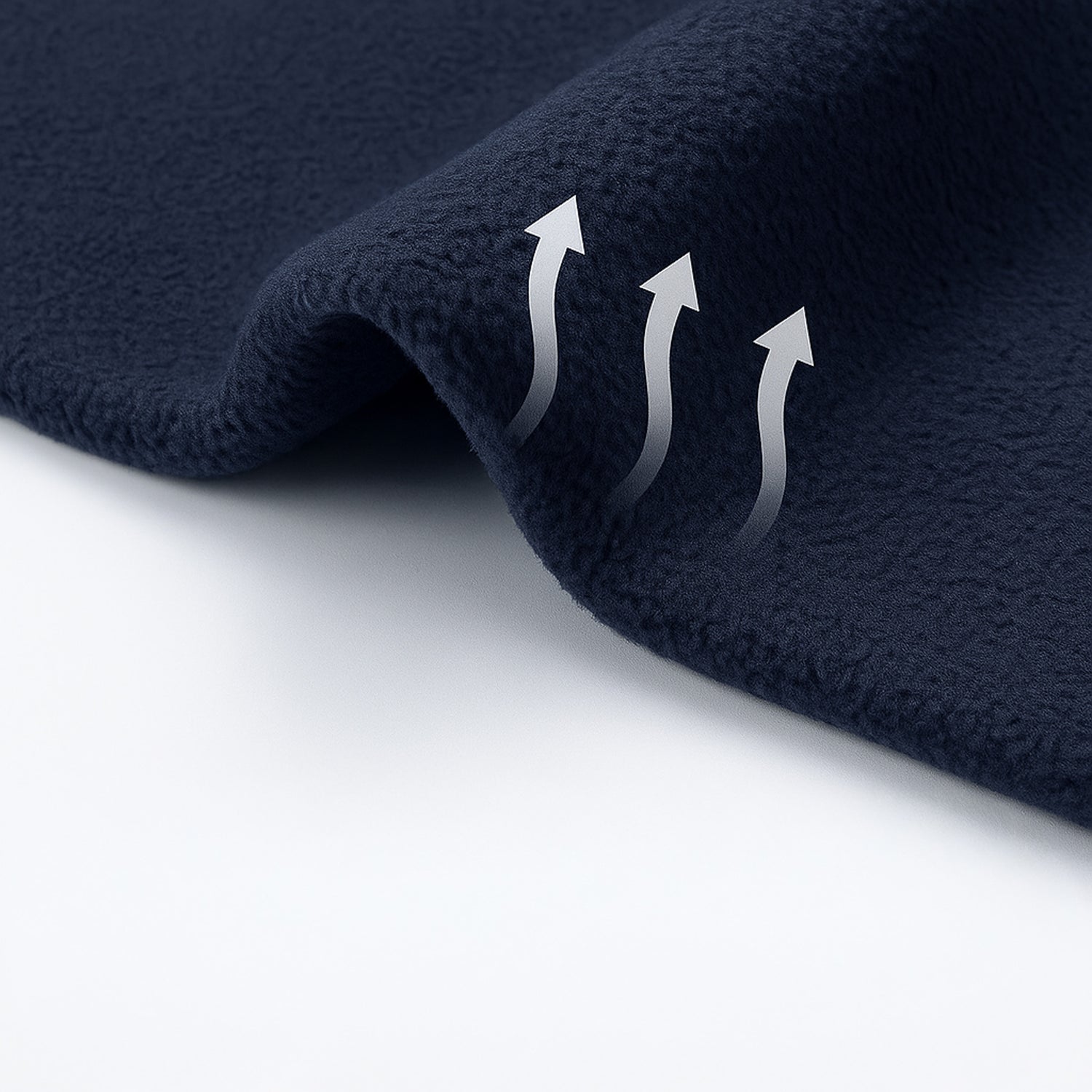 The jacket uses a densely woven micro-polyester shell that naturally blocks high-speed air penetration. The fabric fibers are tightly packed using a 300D weave, which reduces gaps where wind could pass through.